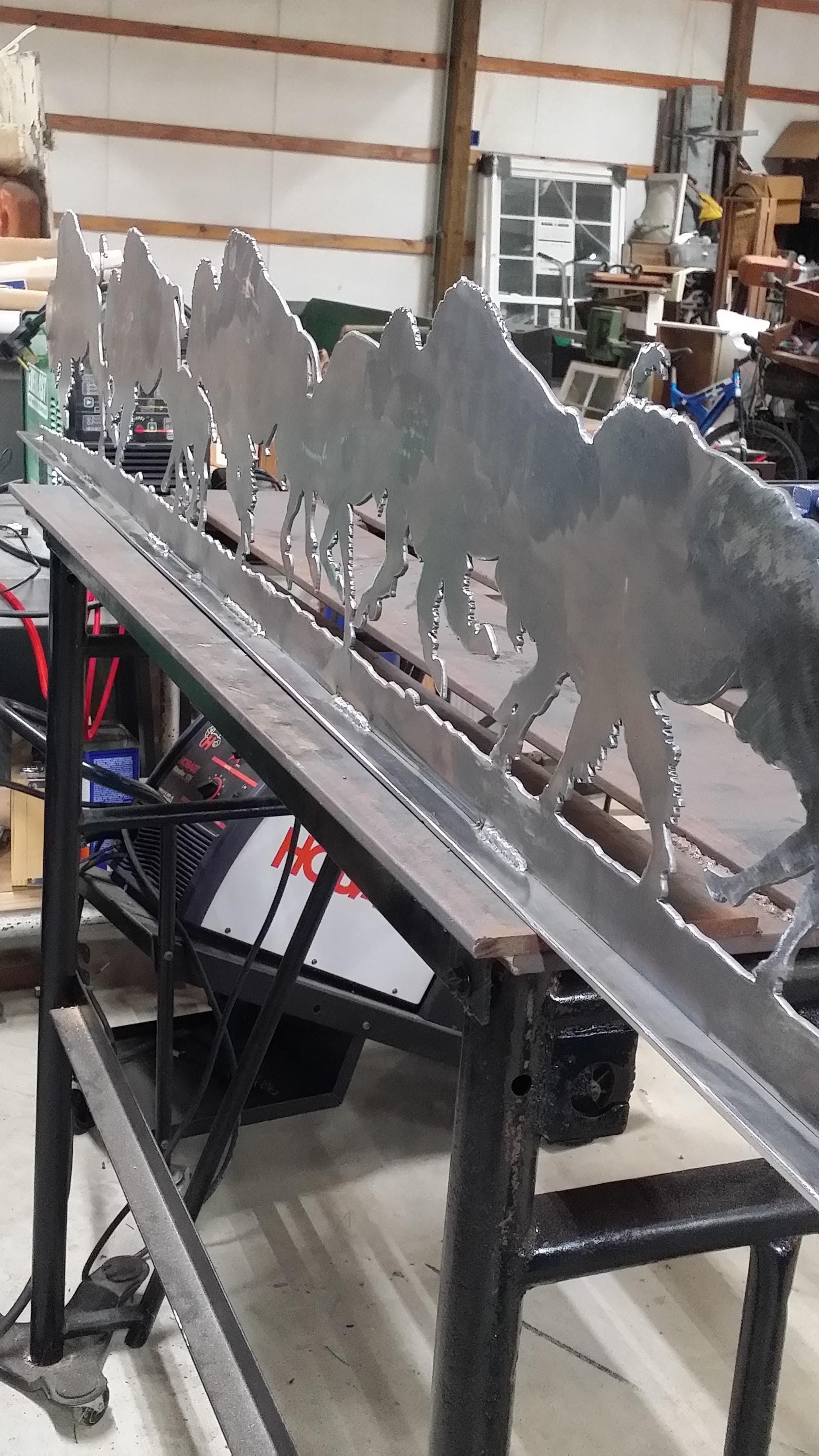Bison Mantle Art in Production in our Shop.